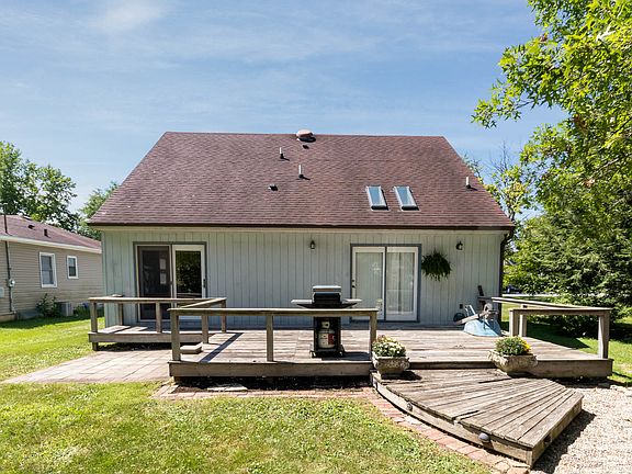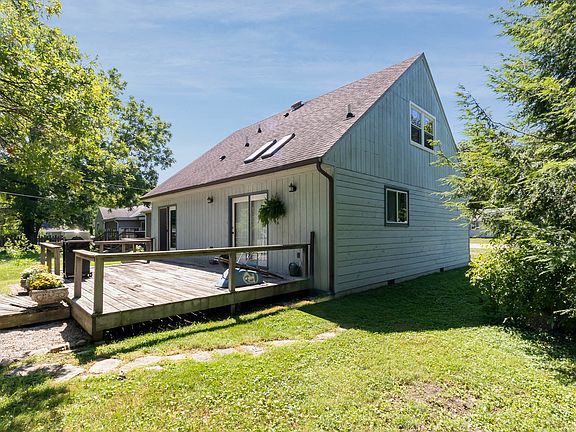 Great location close to downtown Chesterton! Take a look at this 4 bedroom 3 bath Cape Cod with 1 car garage. Main level offers large living room with bow window and laminate flooring, spacious eat-in kitchen with unique vaulted ceiling area with skylights and French doors to back deck, 1/2 bath and 2 main floor bedrooms including the owners suite with updated 3/4 bath and French doors to deck - both have laminate flooring. Upstairs you will find 2 large bedrooms with ceiling fans and a full bath with ceramic flooring. This home offers hot water heat + floor air units and newer windows!!