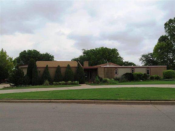 Garden setting in the city! This house is amazing with it's gigantic lodge-like family room with a wood burning fireplace, and wood cathedral ceiling. Home has a total of 4 bedrooms, 2-1/2 baths, kitchen with stainless appliances, laundry room comes with washer and dryer, folding table and 1/2 bath. Master bedroom with double closets and private access to hot tub/Florida room. Back yard is a private oasis with multiple out buildings, tiled patio and storm shelter. Security system, circle drive. OH...and that's not all...a detached 20 x 30 motor home garage/work shop! LOTS to offer here! HUGE PRICE REDUCTION!!!