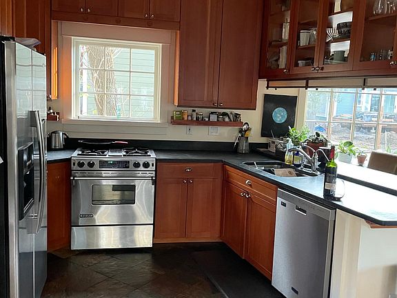 Located a few blocks from the Emerson Center, this amazing house was built by expert local craftspeople in 2004. It has a modern open floor plan & finishes, and a historic-style charm. The main floor has an open kitchen, living & dining room with SS appliances, soap stone counter tops, drinking water filter and bamboo floors. The upstairs level is a beautiful master suite with huge walk-in closet, slate tile shower, clawfoot bathtub, dual sinks, and separate little office room & private balcony. The bedroom is amazing, but the one thing that it lacks is a door. This house is more suited to a couple or a family rather than a group of roommates. There are only 2 on-street parking spaces available. The basement has egress windows and 2 bedrooms and a full bath as well as washer / dryer. The entire house is well insulated and beautifully heated with radiant floors. Located on a small private lot with mature trees & a storage shed as well as covered bike storage area. This is a high quality home in a fantastic location. Utilities (water, sewer, garbage) and basic landscaping are included. Home is rented unfurnished. Renter pays gas and electric. Home is efficient (radiant floor heat) and well insulated. Owner pays water and garbage/recycling. No smoking inside the house. On street parking for 2 regular size vehicles