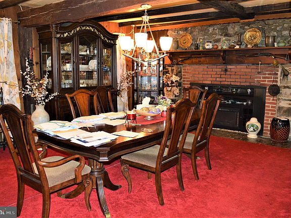 You can own a little piece of history with this character filled home with 2' thick stone walls. The first floor features an updated galley style kitchen with a breakfast bar, a large formal dining room with an old fireplace (the current owner has placed an electric fireplace insert in it that will remain) and wood floors under the carpet, a living room with another fireplace, first floor primary bedroom and bathroom, a second full bath and an enclosed porch or mudroom. Upstairs are three additional bedrooms and a third full bath. The basement is currently used as offices but could be a family room with another decorative fireplace. The lot is mostly fenced with two access points to the driveway. There is an automatic fence opening system on one of the access points. An oversized two car carport provides protection from the weather near the entryway of the home and there is an additional one car garage that is accessed via an alleyway behind the property. The seller plans to leave the propane powered generator and associated “owned” propane tanks.