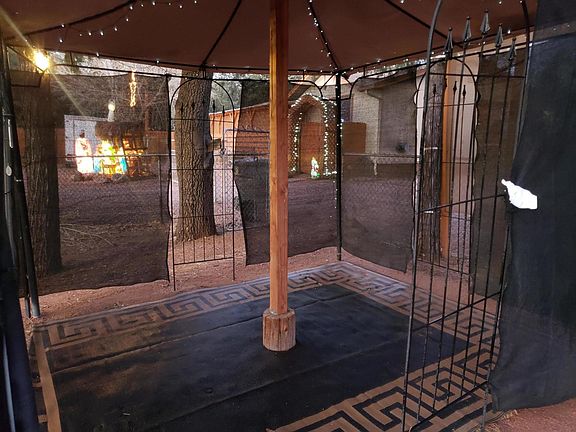 - Exterior Features: Covered Porch/Deck, Tall Pines on Lot, Storage/Utility Shed, Porch/Deck, In the Trees, Guest Quarters, Satellite Dish, Spa/Hot Tub, Stall/Corrals, Screened Porch/Deck, Fire Pit, Gazebo/Ramada, Separate Guest House