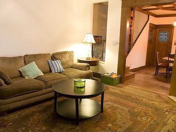 Looking for an affordable home that has old world charm combined with contemporary updates? Nestled on a quiet street, some of the features include: three floors of living, spacious basement, nice front porch, and quiet backyard. On the first floor are inlaid white and red oak floors, coffered dining room ceiling, gas fireplace, and original woodwork throughout. The kitchen is an eat-in space with a large pantry for all of your storage needs. The stairs leading to the second level have a skylight-open and air, this is one of three in the house! On the second floor there are three bedrooms and a full bath. Hard wood floors and refinished woodwork continue through this level as well as the third. The third floor is the ultimate master retreat with vaulted ceiling and a full bath including a glass block shower for optimum light and style. Schedule your private showing today!Owner is in process of moving out.