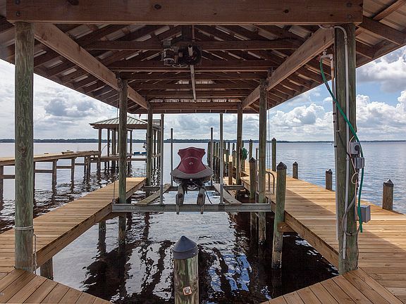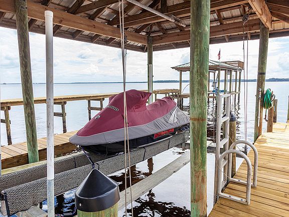The waterfront views don't get any better than they are from this town home located right on the St.Johns River in Fleming Island. There are two bedrooms upstairs and a third bedroom/bonus/game room downstairs. There is a brand new dock with a boathouse and lift. There are upstairs and downstairs balconies with truly impressive views of the three mile wide St.Johns river. This end unit home features a gas fireplace, a wet bar, a kitchen with with granite counters, a new roof, a new dock and more. There is a community pool right nearby. Enjoy everything Fleming Island has to offer from this convenient location.