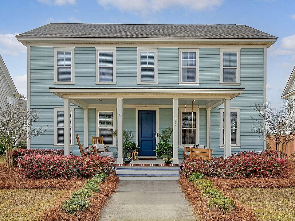 Nothing says southern living like a great front porch in a sidewalk community that just feels like home! Shows like a model home from the beautiful blue front door to the screened rear porch and every inch of the 2500+ sq.ft. of space this home offers. Formal dining room and Flex/Office space just inside creates entertainment or work from home options. Designed to entertain, the well appointed kitchen highlighted by a massive center island, will make the most discriminating cook happy and become the gathering hub for friends and family! Owners suite is located on the first floor and 2 BR/1 BA upstairs. Detached garage and extra parking pad is accessed from rear alleyway. Walking distance to parks, amenities, Take a golf cart ride to school, shopping, dining, and even pickle ball!