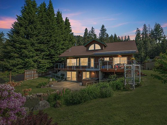 Step into timeless elegance with this exquisitely remodeled 3,567 sq ft custom residence, gracefully perched on a sun-drenched hilltop above the sparkling shores of Lake Pend Oreille, nestled in the charming lakeside community of Hope, Idaho. This architectural gem is a rare legacy property—a blend of rustic luxury and contemporary nautical design, capturing the essence of refined mountain living. From the moment you arrive, you are greeted by a welcoming and inviting entrance, where attention to detail and craftsmanship set the tone for what lies within. Expansive walls of glass frame awe-inspiring panoramic vistas of Warren Island, the breathtaking green Monarch Mountains, and the still waters of Ellisport Bay and Denton Slough, where the interplay of sunlight and shadow creates an ever-changing canvas of emerald hues. Thoughtfully designed for multigenerational living, this home features 4 spacious bedrooms and 3 luxurious baths, including two private primary suites—each intentionally oriented to capture dramatic lake or tranquil garden views. The lower-level suite offers a full bath, kitchen, and private entrance ideal for extended family, guests, or income potential.The main living area is anchored by a striking custom fireplace adorned with quarried stone, and wrapped in the glow of natural bamboo flooring. Here, light floods the space from oversized insulated windows, blurring the boundaries between indoor comfort and the mesmerizing outdoor world. The atmosphere is both serene and dramatic a perfect balance of rustic charm and modern elegance. At the heart of the home is a chef's dream kitchen, fully remodeled with sleek custom cabinetry, quartz countertops, stainless steel appliances, and a generous island that invites social gathering. An entertainer's paradise, the open-concept design flows effortlessly onto an expansive wraparound balcony, complete with remote-controlled awnings, creating the perfect stage for al fresco dining or sunset lounging under the Idaho sky. This expansive deck transforms into a front-row seat for Fourth of July celebrations, as fireworks burst in vibrant colors over the lake, mirrored by the water below an experience that captures the magic of this exceptional setting. The lush .36-acre parcel is fully landscaped and offers a serene and private retreat, with a bubbling waterfall, seasonal pond, heirloom fruit trees, and meandering pathways that beckon quiet reflection. A private hot tub beneath the stars adds to the ambiance, while a large graveled parking area easily accommodates RVs, boats, and guests. Additional comforts include air conditioning, an insulated garage, ample storage, and city water and sewer ensuring both convenience and luxury. Located just minutes from the Hope Marina, renowned lakeside dining, and the quaint heart of town, this property allows you to fully embrace the North Idaho lifestyle, where natural beauty becomes an integral part of your everyday experience, and connection to land, water, and sky feels effortless. Whether you seek a full-time residence, a multi-generational sanctuary, or an elevated vacation home, this is a rare offering, a property to be cherished for generations, where every window frames a view, and every moment is steeped in tranquility. Handicap accessibility throughout the home.