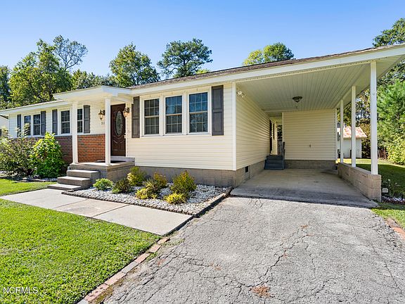 Welcome to your next home in the heart of Northwoods, a well-established Jacksonville neighborhood perfect for first-time homebuyers, military personnel, or savvy investors. This 3-bedroom, 2-bath home offers 1,705 sq. ft. of space is ready for new owners. The front living area and bedrooms hide oak hardwoods beneath the vintage mauve carpet—whether you embrace its retro charm or see it as a chance to refinish some beautiful hardwoods, the choice is yours! There's a formal dining room & a cozy den with a brick fireplace, ready for you to add an electric or gas insert to create the perfect ambiance. The kitchen is just steps from the carport, makes unloading groceries a breeze, and the included fridge is one less thing you'll have to worry about. Outside, the 20' x 25' detached one car garage/workshop with power and water is ideal for projects or storage, and a 12' x 16' shed adds extra space for all your needs. You'll appreciate the convenience of a walk-in laundry room, new water heater, and the electric HVAC system was installed in 2020-2021. They took out the chimney and replaced the back half of the roof this year, and the front's only about 10 years old. This home is close to MCAS New River, Camp Lejeune, public transportation options, and everything Jacksonville has to offer, making it a great choice for anyone looking for easy commutes or quick shopping trips. The seller is offering $3,500 toward your closing costs, so whether you're just starting out, relocating, or looking for a solid investment, this home is ready for you to make it your own. Hire a Realtor, schedule a showing, and picture yourself here for the holidays!