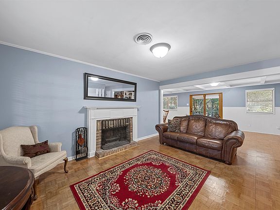 Step inside and you’ll be greeted by original hardwood flooring, a cozy living room with a classic fireplace, and a built-in desk and bookshelves—perfect for working or studying from home. The kitchen features ample storage and a functional layout that connects seamlessly to the open dining area.
