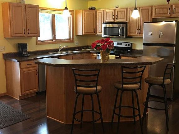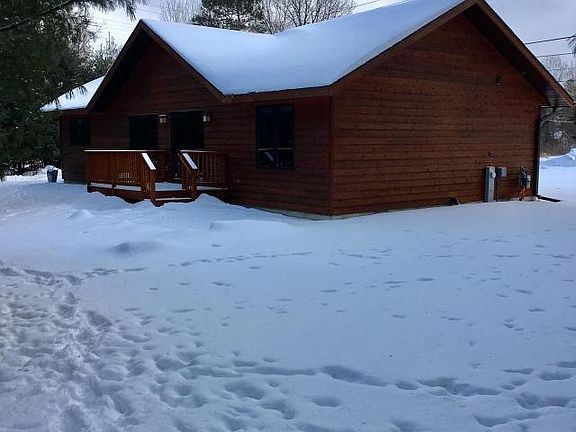 SHERBURN STREET RANCH - This absolutely charming, well-built 3bd/2ba ranch sits just walking distance away from all the in-town amenities that Eagle River has to offer with Riverview Park & the Eagle River Chain basically out your front door. Southern-facing, this split floor plan has a large master ensuite with a spacious walk-in closet on one side and two bedrooms and a full bath on the opposite side. Open concept living area comes complete with vaulted ceiling of tongue and groove, kitchen island has a breakfast bar and stainless steel appliances round out the kitchen/living/dining area. Solid 6-panel oak doors throughout. LARGE windows throughout the home let in all of the beautiful sunshine into this perfect ranch with city sewer and water. Backyard deck lets you enjoy the woods and privacy. Plenty of room to build either an attached garage or detached garage. This home is move-in ready!