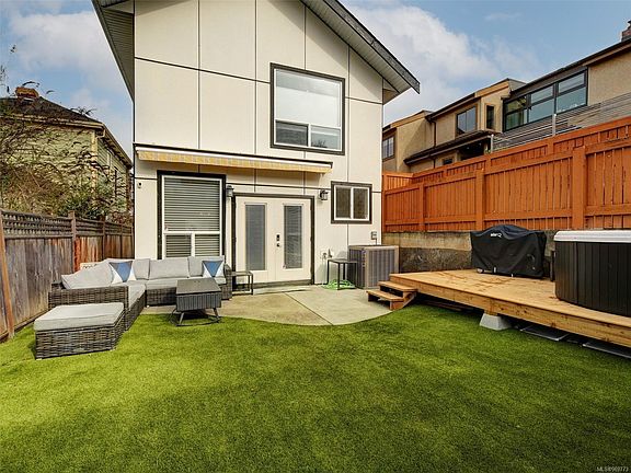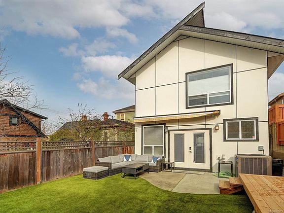 Ideally located in charming & historic James Bay, this modern and efficient home offers light filled, open-concept living space. Gourmet kitchen w/ SS appliances, custom cabinetry & solid quartz island. Living room offers custom built ins, engineered wood floors & Hunter Douglas blinds throughout. Newly installed solar panel system greatly offsets electricity costs. Heat pump for efficient heating & cooling. Net Energuide rating of ZERO GJ/year! Top floor features 11ft vaulted ceilings throughout & all 4 bedrooms incl. primary suite with 2 walk-in closets & luxurious 5 piece ensuite. Relax & unwind in the low maintenance fully-fenced south facing backyard with high-quality artificial grass, large patio area with retractable awning and deck with hot tub & garden storage shed. Just steps from Victoria's most iconic attractions, including Dallas Rd, Beacon Hill Park, Fisherman’s Wharf & all the entertainment options of downtown Victoria! Live your luxury