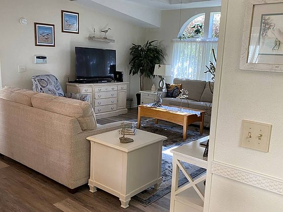 **EXCLUSIVE LISTING, CALL LISTING AGENT DIRECTLY** Spectacular 2/3 bedroom and 2 bath home in The Hamptons Golf and Country Club of Auburndale! A gated, very active 55+ community with beautiful facilities and lots of amenities and activities!! A real Resort Lifestyle Community!!! The home is very open and spacious with beautiful laminate and tile flooring!! The bedrooms are very roomy including a huge master suite with 2 walk in closets, and large private bath with double sinks, step in shower and linen closet!! The second bedroom is roomy as well!! There is a large office that can double as a third bedroom!! The living room and dining room are large and open with a trey ceiling! The eat in kitchen is updated with plenty of cabinets and counter space! The lanai is huge with wonderful views of the golf course and pond!! Extras include a large attached shed, painted carport, AND completely furnished!! The golf cart is negotiable! ABOUT THE COMMUNITY The Hamptons Golf and Country Club has an activities director that creates a monthly calendar of activities, there is something to do everyday! Newly updated/renovated clubhouse with a library, exercise room, billiards room, ball room, computer center with free WIFI, card tables, game room, TV room, recreation hall and a banquet hall. There are plenty of outdoor amenities to enjoy updated heated swimming pool, and hot tub, lighted tennis and shuffleboard courts, horseshoes, half court basketball, pickle ball, bocce ball, stocked ponds for catch and release, and more! Dog park for your fur-babies! RV and boat storage, pet areas The Hamptons Golf and Country Club is a prestigious golf course community and a golfers dream come true! Golf, golf, & more golf right at home! 18-Hole Golf Course, Putting Green & Golf Pro Shop All listing information is deemed reliable but not guaranteed and should be independently verified through personal inspection by appropriate professionals. American Mobile Home Sales of Tampa Bay Inc. cannot guarantee or warrant the accuracy of this information or condition of this property. Measurements are approximate.The buyer assumes full responsibility for obtaining all current rates of lot rent, fees, and pass-on costs. Additionally, the buyer is responsible for obtaining all rules, regulations, pet policies, etc., associated with the community, park, or home from the community/park manager. American Mobile Home Sales of Tampa Bay Inc is not responsible for quoting of said fees or policies