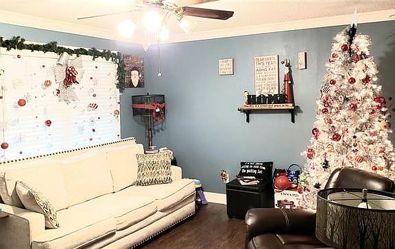 - RoomLivingRoomFeatures: Ceiling Fan(s), Crown Molding