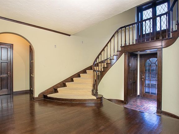 Barloga Tudor Estate! This stunning tudor style estate home was designed by Jesse Barloga in 1926 and is one of the most original examples of his work. This home has all of his signature design features. The main house entry greets you with a sweeping staircase. Huge sunken living room with stone fireplace and built-ins, adjacent family/sun room, wrapped in windows and slate floor. Large dining room with corner china cabinet. Original servant's kitchen, butler's pantry and breakfast room. 2nd floor has huge master with his & hers closets, balconies and original full bath. 3 additional bedrooms and 2 full baths. 3rd floor is huge rec room. 2 car heated garage & large patio. The gated 2+ acre property consists of 3 car detached garage with finished walk-up attic, garden shed, swimming pool, pump house with half bath, summer house, child's playhouse and guest house. A truly one of a kind estate!