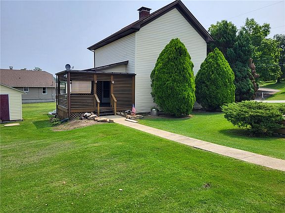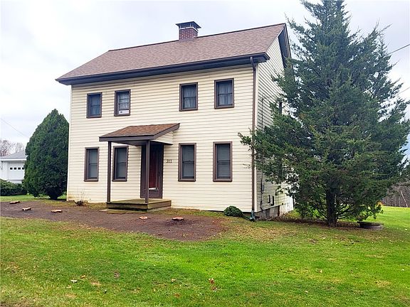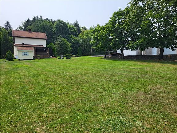 This home may be a log structure with kitchen and porches additions. Listing it as a two bedroom because the 2nd floor would need one wall and two doors built to make it a lovely two bedroom with a full bath upstairs, or the living room with half bath would make a second bedroom 8x12 and 11x10. Main floor-eat in kitchen & full dining room w stacked laundry area & living room/second bedroom. Super cute, covered side porch for your outdoor relaxing. The basement shows the log structure underneath with actual trees for beams w oil furnace, hot water tank. Shed included. 2 car detached garage measuring 30x22 w furnace, steps down to super large garage w a 10' door measuring 28wx67l. was once part of a cabinet making family that since split and garage is divided with cement block wall. If you do not work on vehicles or need the space for work, what a great gathering place for all you family events. 2.6 acre lot. BEING SOLD AS IS WHERE IS. THERE WAS A WATER BREAK IN THE HOME.