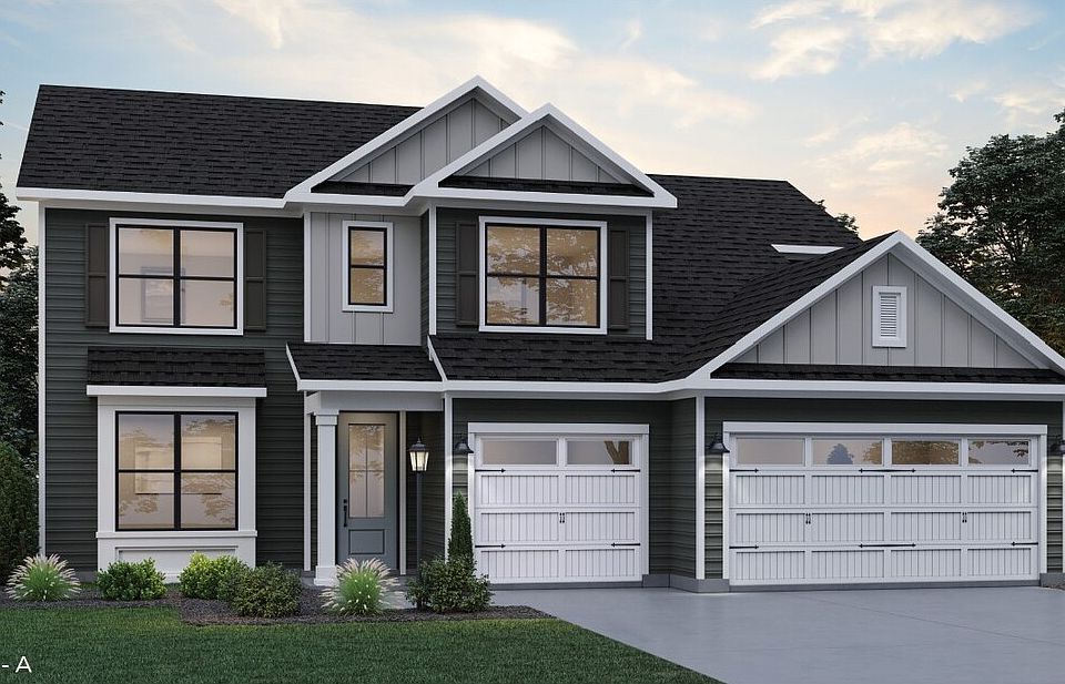 Meet the Jamestown floorplan in Sunrise Acres! This is a 5 bedroom, 4 full bathroom home with an open concept. Kitchen is complete with a butler pantry to the formal dining room, kitchen island overlooks the casual dining area and great room. Kitchen cabinets are white, island has navy cabinets for a contrast. Quartz countertops ; stainless steel kitchen appliances included. Hard surface flooring throughoutt main floor except for guest bedroom which is carpeted. Main floor has a full bathroom near guest bedroom. Second floor features 4 bedrooms and 3 full bathrooms. Bedrooms 3, 4, & 5 are connected to their own full bathroom. Owners suite has owners bathroom which includes a roman, ceramic tile walk in shower and walk in closet. Walkout basement has finished rec room with sliding doors and also offers unfinished space for storage. Concrete driveway with attached 3 car garage. Included: tankless water system, security system devices, 9 ft ceilings.