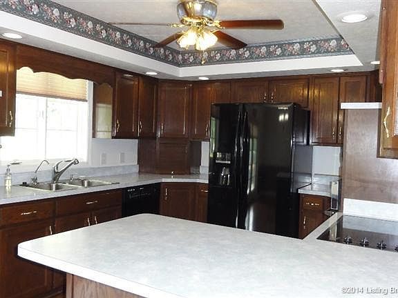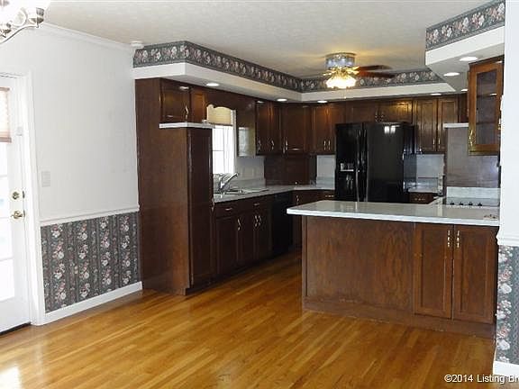 Tucked away at the foot of the Knobs sits this gorgeous nearly 2 acre private paradise! Immaculately maintained ranch home with 2-car attached garage plus over-sized detached garage with concrete floor, electric, & loft storage. Hardwood floors in kitchen & foyer. Huge master closet & master bath with separate shower & corner whirlpool tub. All appliances stay including washer & dryer. Park-like setting barely begins to describe the gorgeous backyard with peaceful water feature, garden spot, & picnic area all surrounded by acres of woods.