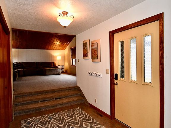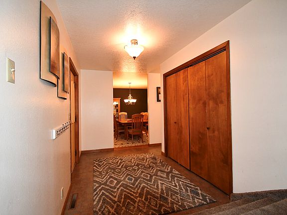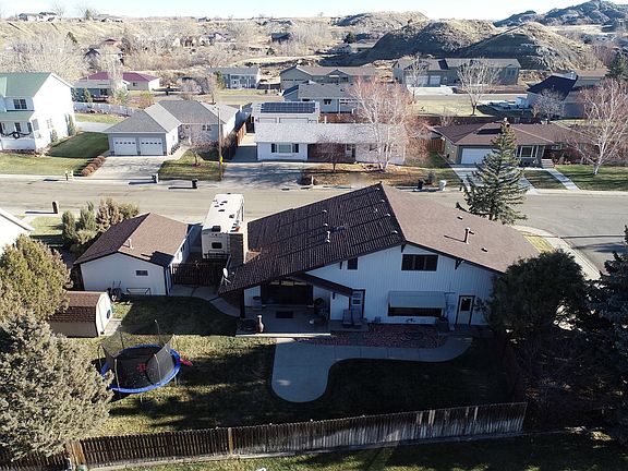 Located in Hillcrest sits this stunning 2 ½ story home on a 12,350 sq' corner lot. This home is 3,202 sq' with 4 bedrooms and 3 ½ baths. The grand entry, upon entering the home has enough space for a sitting area and a large closet for those coats and shoes. The main level of this home features an open floor plan with a huge living area, beautiful wood celiings and wood walls. Step down a few stairs and you can sip coco next to the cozy fireplace, looking out the sliding glass doors of your beautiful large back yard. The kitchen has an abundance of natural light with large windows that face the back yard. The kitchen has all black appliances, which does include double ovens and also Corian countertops. You will also find a dining area, a ½ bathroom and your washer and dryer hookups on this level. Upstairs is where you have your master bedroom and bath. There are two more bedrooms and a full bathroom with a shower too. Downstairs is your large family area with another bedroom a full bath, and a storage area with another hookup for a washer and dryer. The attached, heated, double car garage loads from the corner lot of this home. There is another detached, heated, single car garage to the right of the home. This home does have underground sprinklers and the back yard is fully fenced and has a 96 sq' storage shed. Directly across the street from your home is Lions Park with a playgournd and basketball court. Give us a call to take a look at this one of a kind home in Glendive. All information provided is +/- and although deemed accurate is not guaranteed and should be independently verified.