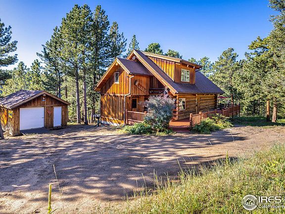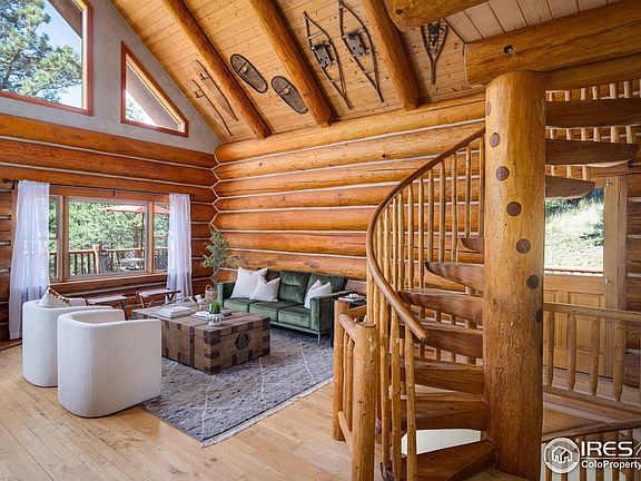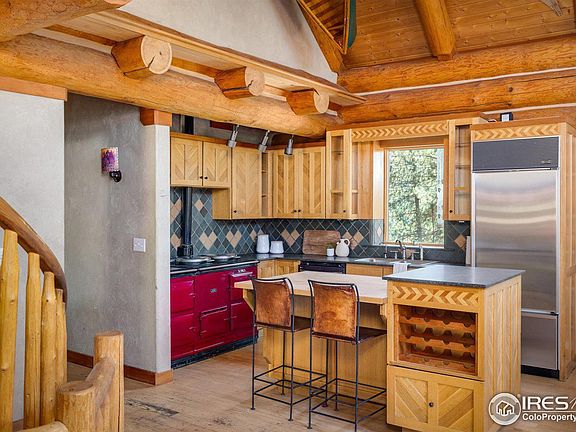 Nestled amidst the breathtaking beauty of the Rockies, this extraordinary log home is a true masterpiece. Crafted from meticulously restored logs salvaged from the historic Yellowstone fire, this residence is a testament to nature's resilience and human craftsmanship. Every inch of this home tells a story, combining rustic charm with modern elegance.Featuring a spacious layout, this log home offers three bedrooms plus an additional office. The heart of the home is the one-of-a-kind European Aga stove, a culinary masterpiece that will delight any chef. Step outside onto the expansive wrap-around deck, where you can savor your morning coffee or host gatherings with friends and family. With 12 acres of mountain paradise, you're just moments away from hiking trails in every direction. Yet, despite this serene setting, you're just 20 minutes from vibrant Boulder and 15 minutes from charming Nederland. You'll have the best of both worlds - mountain serenity and urban convenience.This log home is more than just a house; it's a living piece of history, a work of art, and an oasis in the Rockies. Nature lovers, history enthusiasts, and those seeking the perfect mountain retreat will all find their dreams come true in this remarkable home.