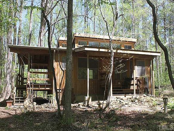 Detached, Traditional - Chapel Hill, NC A rustic retreat in the Chapel Hill woods! Solidly built cedar sided home on 8.6 acres. Only a 10 minute drive to the heart of Chapel Hill! A spacious kitchen with quality wood cabinets/vaulted ceilings/ built-in bookshelves/250 square foot covered porch that overlooks a rolling wooded area! An absolute country oasis in a convenient location!