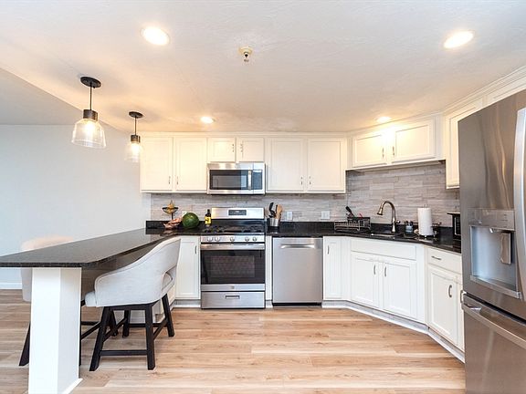 - Features: Flooring - Laminate, Countertops - Stone/Granite/Solid, Breakfast Bar / Nook, Recessed Lighting, Lighting - Pendant