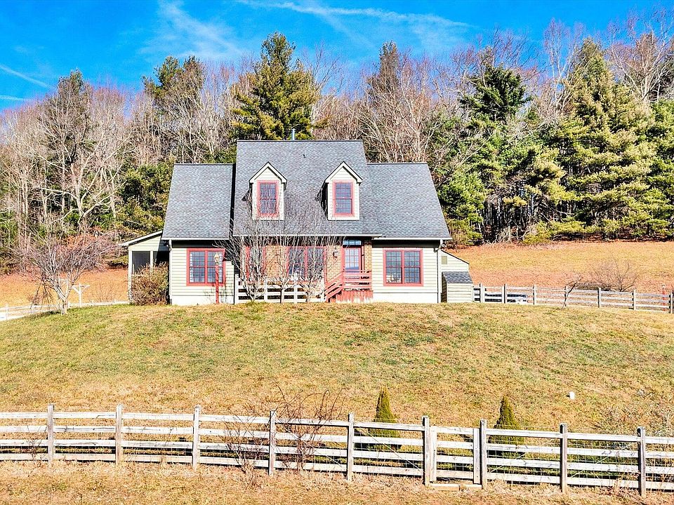 Spectacular breathtaking views in this custom Cape Cod on over 12.50 ac. EarthCraft Home Award, Convenient to Roanoke, Floyd, Blacksburg, Christiansburg and Blue Ridge Parkway. 4 BR, 2 BA Passive Solar home w/ Spacious open floor plan. Approx. 8 acres of cross-fenced pasture for animals, barn, chicken coop, and hobby shed. Living room with wood stove, custom kitchen and dining area, Master BR, private bath, laundry and work room.Upper level offers 3 brs, 2nd full bath. Screen porch, lots of wood, tile and brick, 2 x 6 construction, encapsulated/conditioned crawl space, solar panels to help w/ electricity, energy star doors w/ Marvin windows, tankless water heater, water filtration system, 20 x 30 barn w/ stalls & loft. 10 x 30 hayshed, insulated workshop and garden shed.