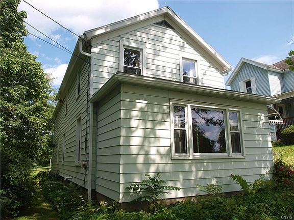 A LOT of value for the money in this home. Some cosmetic updates will make it shine! Mechanicals are newer-furnace & hot water tank along with a newer roof. Maintenance free exterior. This four bedroom home sits on a roomy lot with a two story two car detached garage. There is a large eat-in kitchen. Beautiful hardwood floors throughout including a large hardwood stairway. Offers a first floor bedroom.