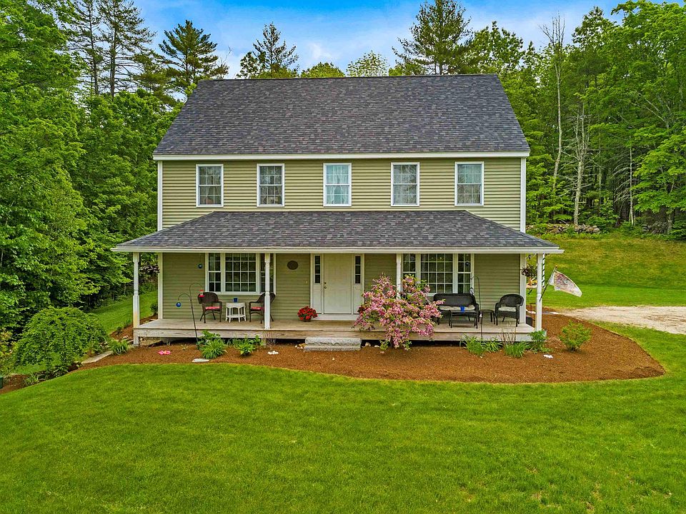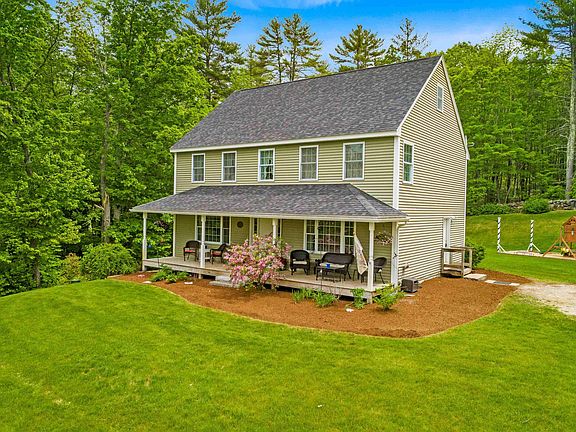 Don't miss this beautiful custom colonial situated on 1.744 private acres in New Boston! This one owner, 3bd/2.5bth home is packed with extras. The kitchen boasts solid wood custom cabinetry, built by Superior Woodworks, upgraded appliances and a new refrigerator (3mos). Open floor plan with nice wide center staircase, hardwood flows throughout the main level. The primary bedroom is ensuite with primary bath and walk in closet. Two additional bedrooms and a full bath can be found on the second floor. Keeping future possibilities in mind, the home was built to easily accommodate the addition of a garage w/bonus room above. The walkout basement is light and bright with windows and has been beautifully finished, offering tons of usable space. The wonderfully private yard features meticulous stone walls, shed, patio, playground area and irrigation system. The irrigation system is set up with its own well. Additionally the home is equipped with a whole house fan, and the central air conditioning is sure to keep you cool on those hot summer days! This is a nice clean home, it won't last. Showings begin Sunday and will run Monday & Tuesday. By appointment *Please note, the kitchen "island" is a piece of furniture and does not convey.
