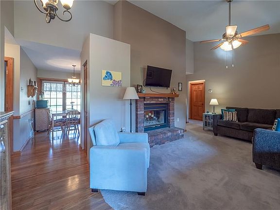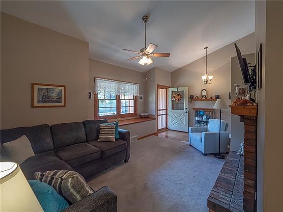 This meticulously maintained ranch style home features the highly sought-after split floor plan. As you make your way up the long driveway, the country views from every angle will fill you with peace and serenity. A welcoming front porch overlooking the changing seasons invites you in to the vaulted living room with a spectacular two sided fireplace! The open kitchen and dining room creates the perfect flow for entertaining guests and again, the two sided fireplace will add ambience to every gathering. The private master retreat is situated on one end of the home and offers plenty of closet space, a door leading out to the deck and a beautifully updated full bathroom. The opposite side of the home holds two nicely sized bedrooms and another updated full bathroom. The finished lower level is a fantastic space for game day parties and offers another full bath and kitchen! Highlights include: 2 car attached garage, 2 car detached garage with half bathroom, large deck & almost 2 acres!