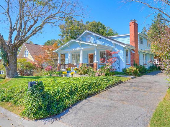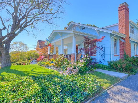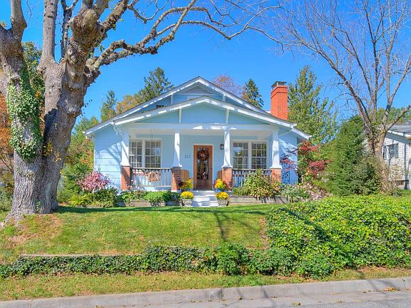 Charming 3BR/2BA 1930's Craftsman-style home in downtown Blacksburg located just off of S. Main St. Classic bungalow design including covered porch with battered columns, porch swing, and deep eaves with brackets. Main level features include hardwood floors throughout, living room with painted brick fireplace and bluestone outer hearth, transition with custom built-ins and tapered pillars, formal dining room, and horseshoe layout kitchen with gas range and lots of natural light. Additional main level features include remodeled bath with timeless Victorian hexagon tile floor, 2 BRs with hardwood floors and large mudroom with natural slate tile. Upper level offers spacious 3rd BR and full bath with clawfoot tub. Full basement with laundry area, ample storage and workshop space. Oversized single garage provides additional storage and/or workshop area. Outdoor living abounds on this level fenced-in lot with mature landscaping, raised beds, and custom built hardscape patio!