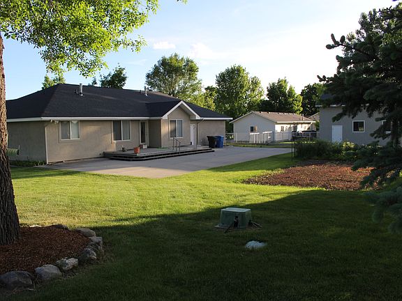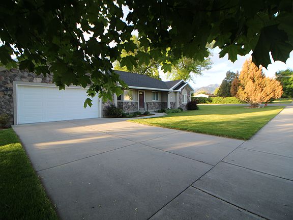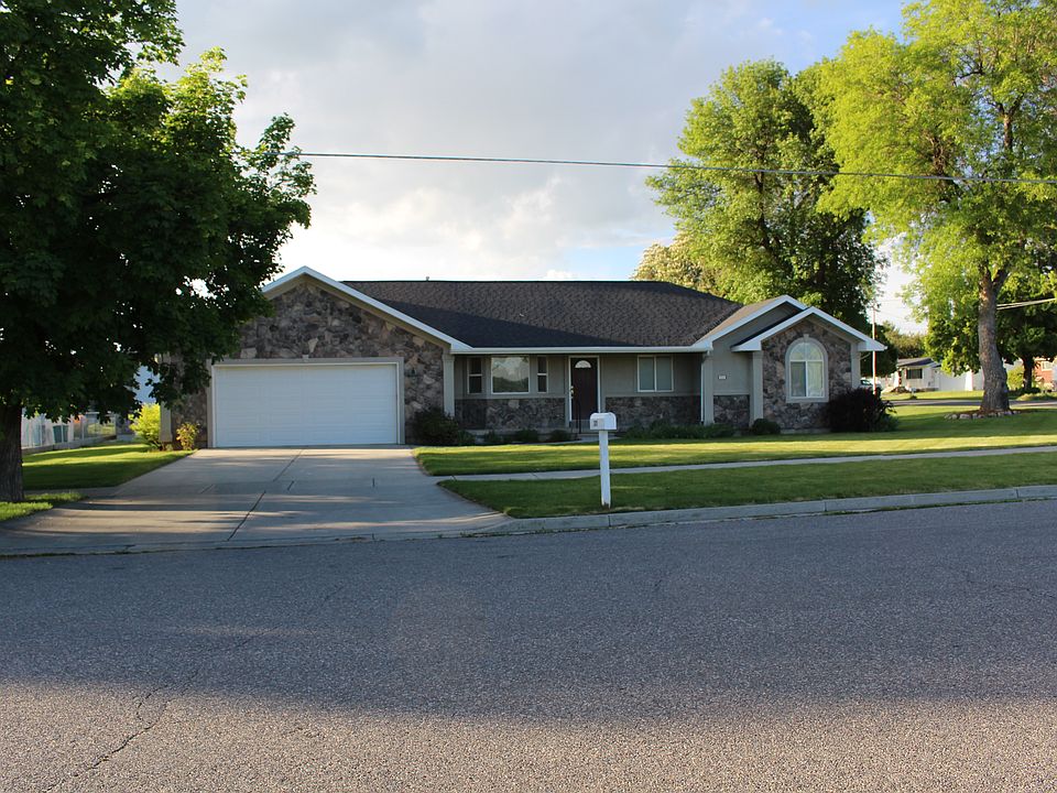 Lots of storage! 4 of the 5 bedrooms have walk-in closets. Porch storage with built-in shelves. Extra large attached garage and an 18 X 26 detached garage with high garage door for trailer or RV storage. Large family room downstairs. Gas stove in family room off the kitchen. Beautiful corner lot. Automatic sprinkler system with a pump. Comes with 1 share of irrigation water.