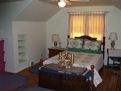 classic 1 1/2 story on 3/4 ac lot. brick frt, newer vinyl siding, windows and rof, both floors has hardwood floors and wood 6 panel doors. lg entry w/marble florring. liv rm has crown molding, din rm w/chandelier and chair rail, kitchen is lg/eat-in w/lots of cabinets, newer stove and flooring, fam rm has fireplace and built in book shelves, 1/2 bath in hall- master bd rm w/bath and walk in closet, 2 lg bedrooms up, full bath, lg closets and attic storage, also lg cedar lined closet, bsmt has 2 rms finished , work cabinets and double sink in laundry area,+ 1/2 bath. humidifier on furnac, lg newer deck in back, garden area, nice landscapng, blacktop drive, newer items include roof, vinylsiding, vinyl tilt double hung windows, stove, garage door and vinyl siding, vinyl titl double hung windows, stove, garage door and opener, deck, disposal, hot water heater, painted inside, ( see list attached )g lovely home w/nice lawn. well cared for.