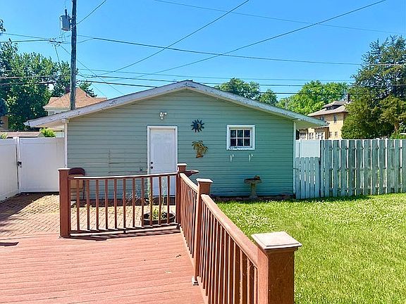 Formal foyer with Grand Oak staircase. Pocket doors to the formal living room. Dining room with custom designed Buffet and trayed ceiling. Oak kitchen with many cabinets, Corian counter, appliances and garden window. The main floor bedroom is close to the bath with jetted tub. Main floor laundry room off the kitchen. Beautiful original oak woodwork and hardwood floors have been restored. Some newer vinyl replacement windows and 10 ft ceilings. Large composite wood deck. Vinyl privacy fence. Utility shed. 2 car detached garage with alley access. The home will not pass FHA, VA or USDA financing.
