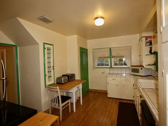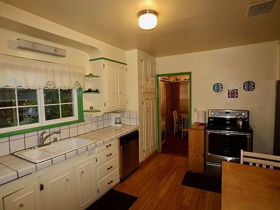 Large 4 BD/ 2.5 BA home located in central Mount Shasta. This home has been an extremely busy vacation rental for years, walking distance to all downtown shops, restaurants and services. This home has so much charm, warm wood flooring, colorful tiled kitchen counters, barn doors, bathtub & separate shower. There are 3 bedrooms on the main floor and 3 additional rooms upstairs in the finished attic. Mini split upstairs for AC/heat. Home has a wood insert fireplace, F/A Oil System and monitor heat. Exterior landscapes with mature trees, flagstone walkways, pergola, sweet front porch and a fenced & gated private back yard. There is a versatile separate built out space with room for an office, art studio or ?? off the ally. Plenty of storage with a full basement & garden shed. There is additional off-street parking in the alley. Seller would like to sell home fully furnished / turnkey including infrared sauna. Peak-a-boo views of Mt Shasta.