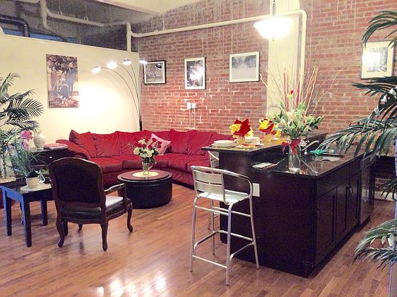 Central air and heatTons of natural lightWood floorsStainless steel appliancesExposed brickDark cherry cabinetsBlack granite counters