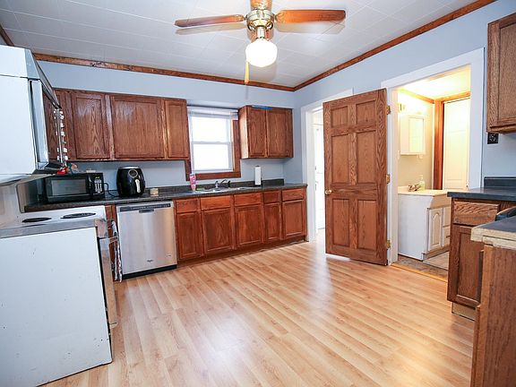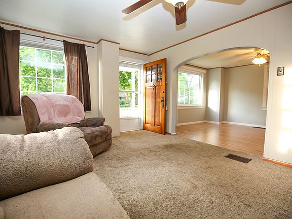 This charming 1.5 story home boasts functionality and ample space. Its two bedrooms and one bathroom provide comfortable living quarters. The two garages, one for two cars and the other for one, offer convenient vehicle storage. Additionally, two sheds in the backyard provide extra space for tools or storage. The home features a spacious yard with a concrete patio, perfect for outdoor relaxation or entertaining. With bright spaces and lots of natural light, this home creates a warm and inviting atmosphere. The first-floor laundry room and two mud rooms make everyday living easier. The concrete floor basement includes a bonus space that can serve as a workout room or a cozy hangout area. This property offers a harmonious blend of comfort, convenience, and space.