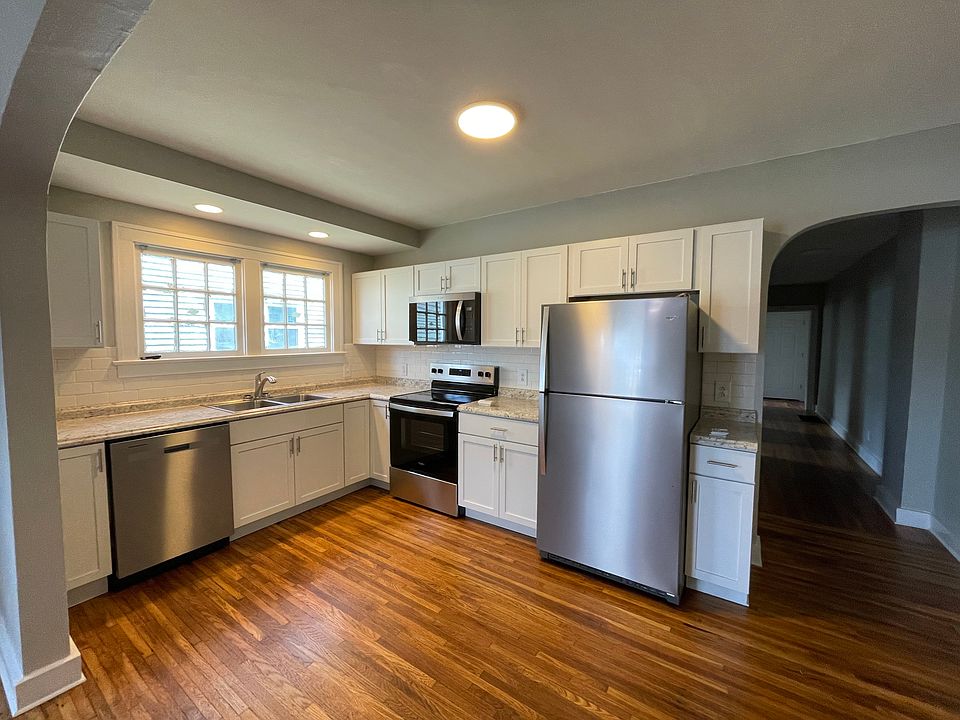 This unit has been completed renovated with a new central air system, roof, refinished hardwood floors, vinyl plank floors in the bathroom, completed renovated kitchen with new appliances, cabinets, countertops, lighting, and sink, completely renovated bathroom with a new vanity, and bath/shower combo. A window addition to the living space with extra natural light.