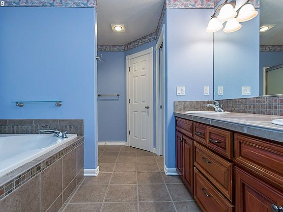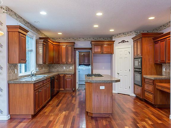 This Newberg two-story home offers a covered front porch, hardwood flooring, a gas fireplace, a den, an office, a patio, and a three-car garage.