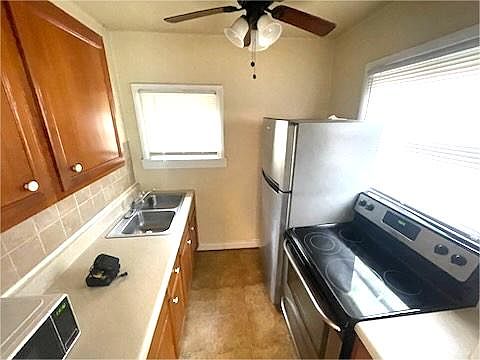 Tired of paying for your utilities? You don't have to worry about them in this one bedroom, one bath, upstairs apartment in downtown Auburndale. Living room, kitchen with electric range and refrigerator, large bedroom, spacious closets, ceiling fans & blinds throughout. Enjoy your evenings on your private deck. Carport, access to washer & dryer, neutral carpet, remodeled bathroom with shower, two heat/cool units. Small pet considered - additional $500 minimum refundable pet deposit will be required if approved. Landlord maintains lawn. $995 per month, $995 security deposit, rent includes water and electric, minimum 1 year lease. School zones: Auburndale Central Elementary, Stambaugh Middle, Auburndale Senior High, Auburndale Central Head Start, Haines City IB Program. Application and fee required - background, credit, income verification, references. Water and electric included.