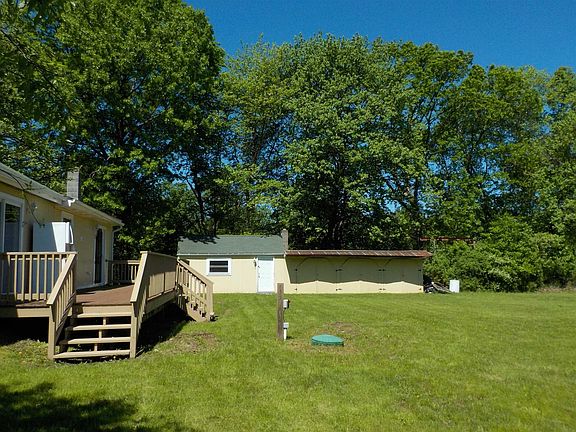 Looking for that cute little ranch on that quiet street, very low taxes & low up keep. This is your home. Freshly painted , new laminate floors completely remodeled kitchen & bathroom. Level 8 plus acres could be used as a farm w/good loam soil. New B dry system installed addtional storage for lawn or farm equipment sheds next to the house. This won't last . Septic is new w/ raised system & concrete tank. Just completed Trex decking in front & rear deck.