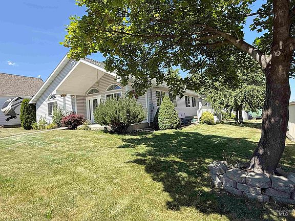 This spacious single-level home features 3 generously sized bedrooms, 2 bathrooms, and 2,060 square feet of bright, open living space. Vaulted ceilings and abundant natural light create an airy, welcoming atmosphere throughout. The kitchen offers ample cabinetry, a large island, and flows seamlessly to the covered back deck—ideal for outdoor dining or entertaining. An oversized two-car garage provides plenty of space for a workshop or additional storage. Thoughtfully designed with accessibility in mind, the home includes wide hallways, a walk-in shower, and ramp access. Additional highlights include a brand-new roof, new kitchen appliances, central heat/AC, new interior paint, some new floors, and great landscaping with in-ground sprinklers. This home is conveniently located close to downtown.