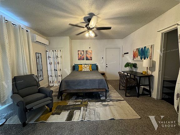 LEASED until November 2025. Come see this furnished studio apartment for rent in Downtown Springfield. This apartment is on the second floor. The living area is carpeted and the all-white interior makes the studio feel open. A closet has a stacked washer and dryer hidden from sight. Furniture includes a bed, a table and chair, a recliner, a chest of drawers, armoire, and a television. The kitchen has new white cabinetry, black laminate countertops, and white subway tile backsplash. The appliances are stainless steel and include a refrigerator, dishwasher, microwave, stove and oven. The cabinets are full of all basic cookware and dishes required for daily use. The bathroom features a bathtub-shower combo. This apartment has both a front entrance and a back entrance up an outdoor staircase. Located downtown just off South Avenue, diagonal from Jenny Lincoln Park. Pet-friendly property with two pets max. Some breed restrictions apply. Applicants must meet the following rental requirements: (1) Household income must be at least 2.75 times the monthly rent. (2) No evictions within the last 5 years. (3) A minimum credit score of 600 (a score of 550-599 may be approved at the property manager's discretion and double deposit is required) (4) Pass a background check.