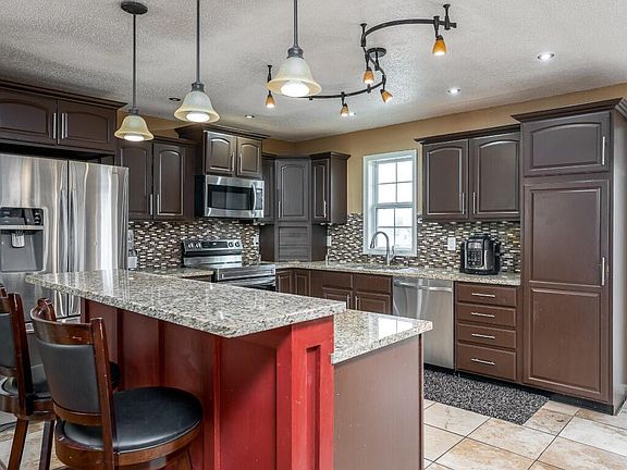 Wide open floor plan w/5 bdrms & 3 bthrms.Large kitchen w/travertine flooring & granite counters.Spacious living room w/gas fireplace.AMAZING Master Suite w/large walk in closet,custom tile shower,whirlpool tub & private balcony.Professional office w/built in book cases,lower level family room w/gas fireplace and built ins. Large fenced yard,storage shed and large deck.A MUST SEE HOME. Tvs that stay: Living Room, Master Bedroom, Master Bathroom.