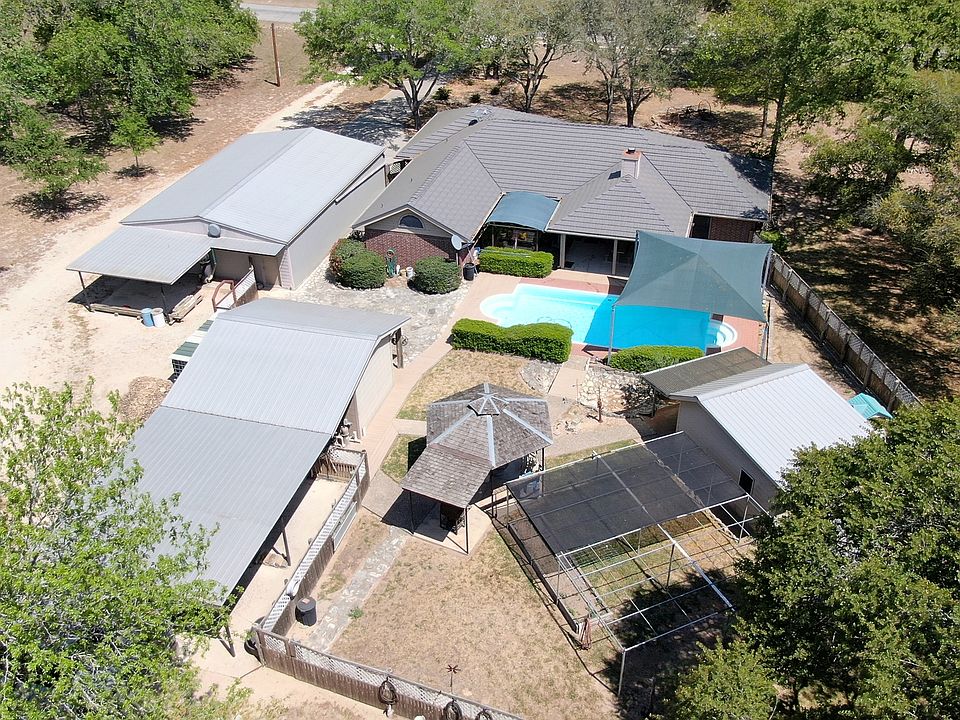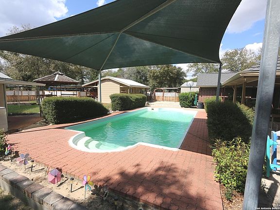 **Very Clean** This is one of those pretty much Move-In,Un Pack & Relax type Property...Nearly everything's done....Approx 2200sf "4-Side Brick Hm" Ranch Style Hm w/Upgraded METAL ROOF in The Quaint & Picturesque *Home Place Subd* that has NO Hoa dues or City taxes & Low 1.9% Tax rate in the Sought after La Vernia ISD,...Approx 40x16 INGRD POOL w/Suncover & Approx 300sf POOL HOUSE STUDIO w/Bathroom,Detached Approx 40x30 3-CAR GAR/WORKSHOP w/Metal Roof & Drive Thru Doors & "Lots of Other Extras' as it was a Woodwork Shop w/Some Items that are Negotiable... Behind the Gar/Workshop is a 20x16 & 36x20 Metal Carport/Equip Storage Area..Fully Fenced Backyard,24x24 Covered Garden area w/Rainwater Collection Tanks,20x16 Storage Bldg w/Covered Patio,The Pool House,12x12 Gazebo/BBQ Area & 16x10 Covered Patio that Overlooks The Pool,...Hm's Garage was Converted into a Very Spacious Living Area BUT there is The Detached Approx 40x30 Gar/Workshop Nearby...3-BD & 2-BA (Split Bd Plan) 2-Living Areas,Blt-in Entertainment Center,Catherdal Ceiling,Custom Fireplace Insert,Window Coverings,Ceramic & Laminate Flooring,Lg Closets & Lots of Storage Areas,Newer A/C Unit,Solar Screens,Raingutters & Downspouts for the Water Collection Sys,Over 40-Mature Trees & Lush Landscapping,..Very Clean Hm that Displays a Lot of TLC And Pride of Ownership **THRU-OUT**