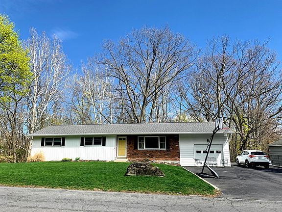 Solid, sweet, and so much more than meets the eye! This well-maintained West Hill ranch has been lovingly cared for by the same owners for 50 years! Gleaming hardwood floors on the main level continue on under all the upstairs bedroom carpets. Main level primary bedroom has en-suite bath. Nicely updated kitchen features solid surface countertops, herb-garden window box, and main level laundry. Exit the dining room sliders onto your private balcony overlooking your own little nature preserve complete with a meandering creek. Partially finished basement has a Kodiak wood stove for cozy evenings by the fire. Need Storage? There's plenty of dry basement and garage space for all your storage needs. This sturdy gem is situated in the heart of one of the most walkable neighborhoods in all of Ithaca. A real find.