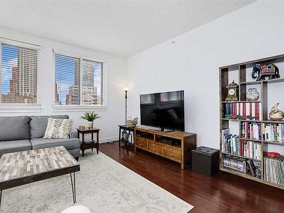 Large 2 bed 2 bath unit (1,306 SF) in the heart of Jersey City Downtown at the Washington Commons Building. Features Doorman, Exercise Room, Elevator, Washer & Dryer room. Beautiful layout unit faces South and has gleaming Hardwood Floors. Kitchen has Granite Countertop. Rent includes one Garage Parking . Prime location! Just 5 minutes to Grove Path, 1 minute to Light Rail and 10 minutes to Ferry!