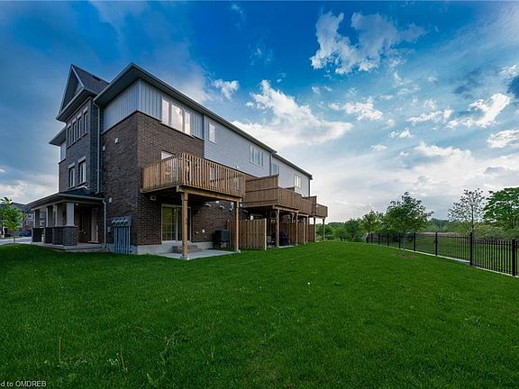 Two Car Garage End unit Townhome with close to 1900 sft. 3 Bedrooms and a Upper lounge Loft (Playroom/TV room). Two and Half washrooms. Generous sized Dining and Great rooms. Bell High speed fiber INTERNET is covered by the Condo Fee. Beautiful Ravine in the back. Backyard Deck for those pleasant evenings and BBQs. Main floor has an office which has separate access door to Backyard. Hot water Tank and softener are rentals. House is close to Kiwanis park nestled among very desirable community. Beautiful Grand river Near by. Very much desirable community.
