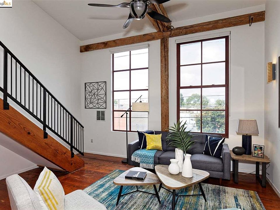 Steel Works Lofts presents this contemporary 1+ bedroom, 2 bath loft, featuring three open levels with an inviting floor plan and industrial flair galore. The entry level offers sleek, stained and polished concrete floors with high ceilings, a full bathroom, laundry closet and additional storage under the stairs. Upstairs you are greeted with handsome, rustic hardwood floors and exposed beams in the open living area, all bathed in natural light from the soaring ceilings, massive high windows and skylights! The eat-in kitchen features updated shaker cabinets, granite counters and new stainless steel appliances. This home also includes new interior paint, new carpet and a dedicated parking space in the gated parking area. With a Walk Score of 83 and a Bike Score of 96, you are conveniently located near freeways and easy public transportation options, with proximity to restaurants in Temescal, Bay Street shopping, and more. Open Sunday 9/22 from 2-4 pm.