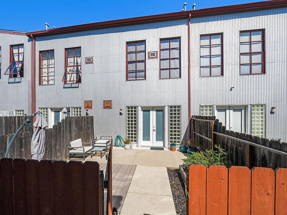 Everything about this amazing condominium is unique! This is not your run-of-the-mill home. It will comfortably be a 2 Bed, 2 Bath condo w/in-unit laundry, it lives like large urban home with three levels of living space & a flexible floor plan. Front yard has ample space for outdoor hosting. Unique for any condo, there is abundant outdoor space, enough for BBQing, dining area & lounge seating. There is a raised garden bed and an extended deck. The home entrance starts off with oversized French doors that leads into a gigantic bedroom with walk-in closet. This floor has full-size, stackable washer and dryer and a full bathroom. Up one floor to the open living/kitchen area w/soaring ceilings, wall of windows & bamboo floors. Oversized island separates kitchen from living area. Kitchen w/granite counters & SS appliances. Steel railing adorning the staircase is artwork. At the top of the stairs is another full bathroom & a loft, perfect for an office or guest room. Two large skylights bring in the breeze along with the wall of window on the second floor. One covered parking space is included. Water, trash and gas are included in the rent. Reach out to tour! One year lease, owner pays water, sewer, trash. Parking included. Pet deposit will be required with approved pet. NO SMOKING on the patio or inside the condo.