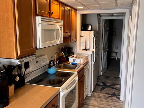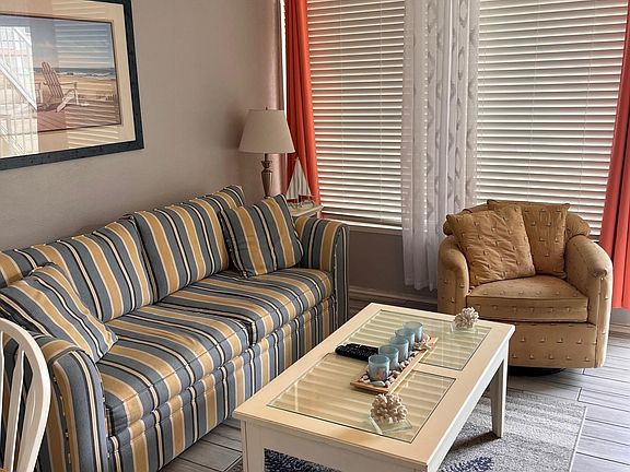 1 bed and 2 baths on 2nd floor with pool view. Although this unit was never rented, the building has consistently rented for $1400-$1650 per week. While this is seasonal, it is not considered a condotel. The building typically opens at the end of March and closes late November. HOA fees include outside maintenance, utilities, pool maintenance, water, sewer, hot water and trash. The roof is only 4 years old. The pool was resurfaced 2 years ago. Parking lot was coated last year, and association has money in reserve.