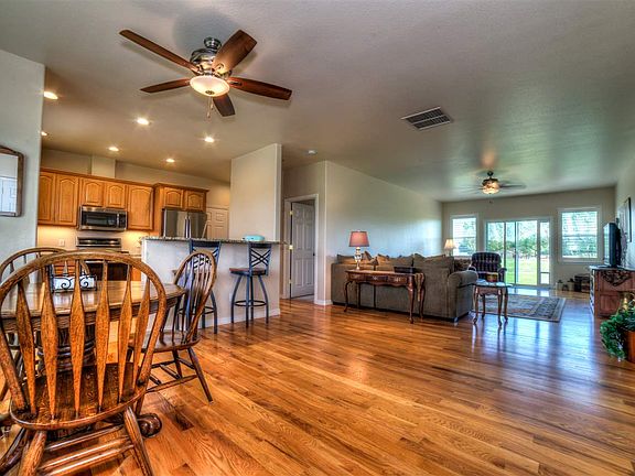Own your piece of Beautiful Country Living! You must see the views, absolutely outstanding in all directions from this spacious rancher offering a split bedroom floor plan, with Large Master Suite. The Oak hardwood floors are absolutely beautiful in the open concept living & dining room. New plantation shutters boast a bright welcoming atmosphere. The Kitchen features new granite counter tops, newer appliances and under counter lighting, with plenty of space for you and your guests! The 4.81 acres has new pipe fencing, ideal for horses, as well as a new back-yard chain link fence for the indoor pets. Enjoy the screened in porch for those relaxing moments. The property also has a large 2 story shed with plenty of room for storage upstairs. The RV parking offers electric & dump. This is a MUST see home, Wonderful layout, room to spread out with animals & toys!
