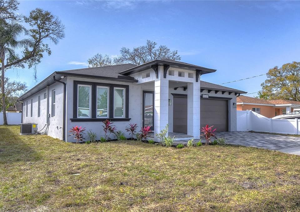Under Construction. Under Construction. STUNNING NEW CONSTRUCTION! Laden with upgrades, this one story 4-bedroom, 2.5 full bath, 2 car garage, block home, impact windows, spacious open floor plan, has an large master suite, master walk in closet, stainless appliances, lighted ceiling fans throughout the entire home, tray ceilings, window blinds, Extended cabinets & counter top space in the kitchen that wraps around into wet bar with beverage refrigerator, wood cabinets, tile back splash, laundry room with sink, paver driveway, It's turn key, move in ready. Just minutes from the stadium, malls, restaurants, In the heart of Tampa! NO HOA / CDD